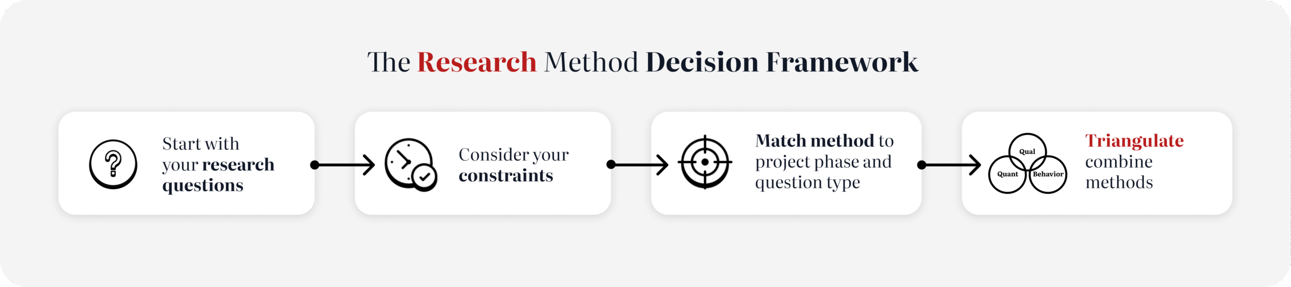 The power of triangulation: When three different qualitative methods all point to the same insight, you can be confident it’s real even without large sample sizes.