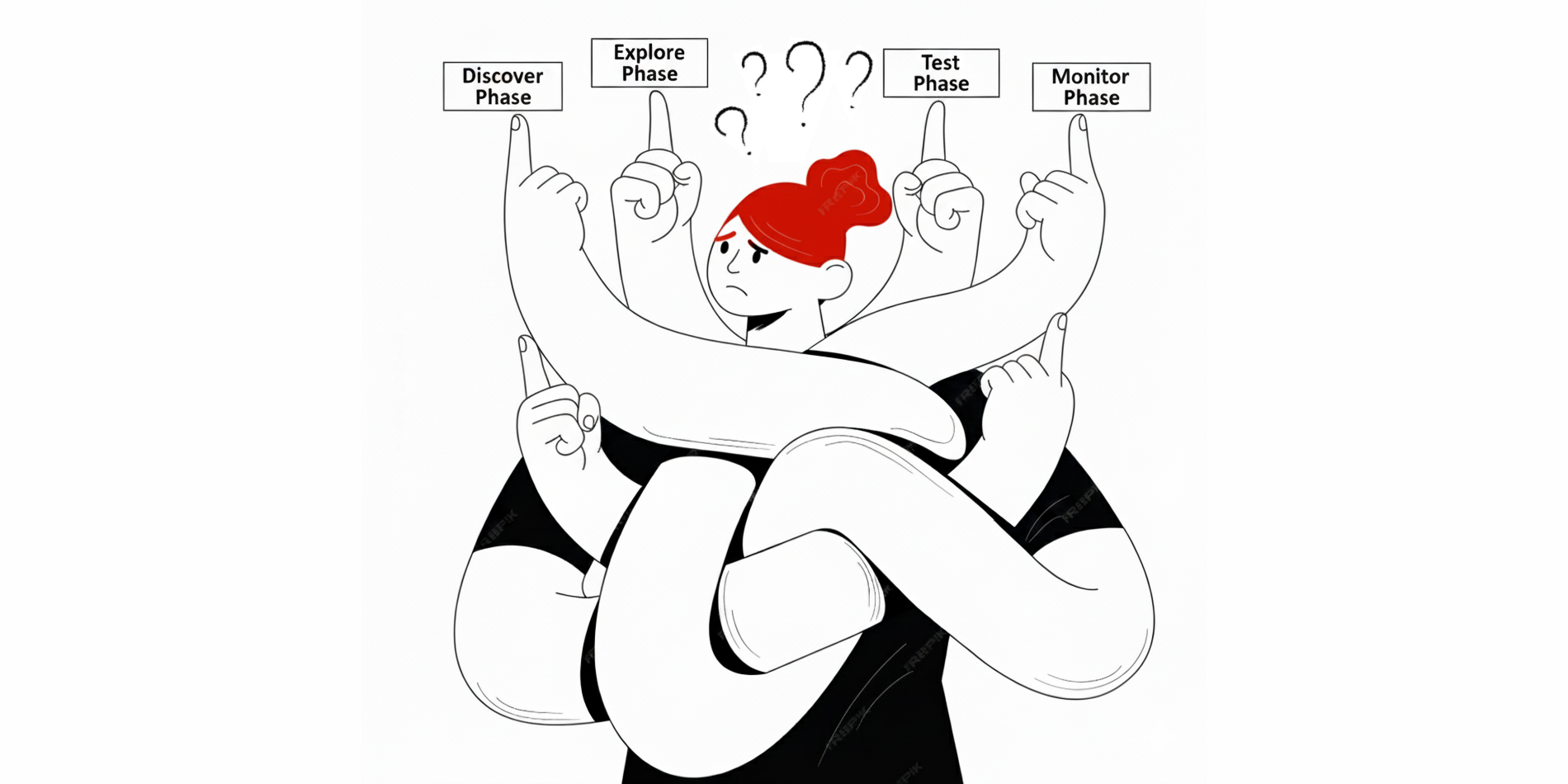 Here’s what trips people up: they think these phases happen sequentially, like steps on a ladder. In reality, they’re more like a spiral. You discover something during testing that sends you back to explore. You monitor something in production that triggers new discovery research. The best teams I’ve worked with treat this as a continuous cycle, not a waterfall.